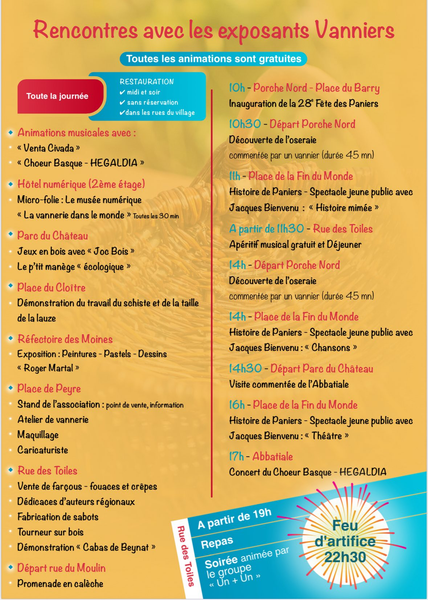 – 10h00 – Porche nord / Place du Barry : inauguration de la 28e Fête des Paniers.