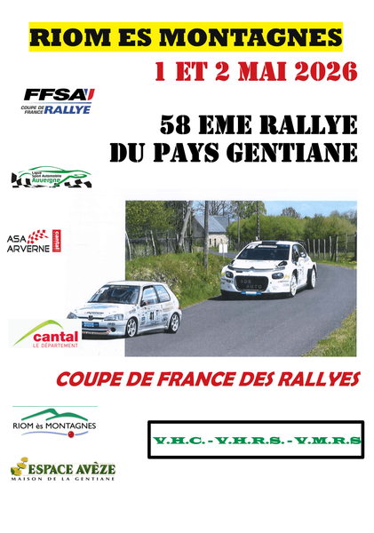 58e édition du Rallye Automobile Pays Gentiane, les 1er et 2 mai à Riom-ès-Montagnes