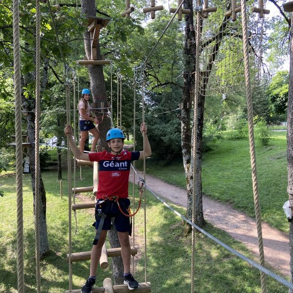 Vous y trouverez tyroliennes, pont de singe, skate roulant, saut de tarzan… Le tout est équipé d'un systéme de ligne de vie continue (sécurité maximale impossible de se détacher).