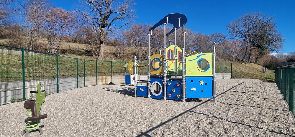 Aire de jeux pour enfants en bordure du plan d'eau de Val Saint-Jean.