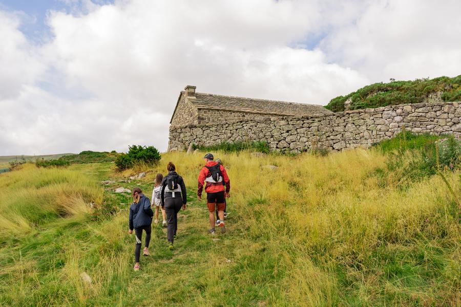 Sentier d'accès au Buron de Salabert, restauré dans le cadre du projet REPAIRES, initiative de rénovation et de valorisation des burons; co-porté par Hautes Terres Communauté et la commune d'Albepierre-Bredons. Itinéraire familiale au pied du Plomb du Cantal avec de magnifiques panoramas. Itinéraire en aller-retour au départ du Col de Prat de Bouc.