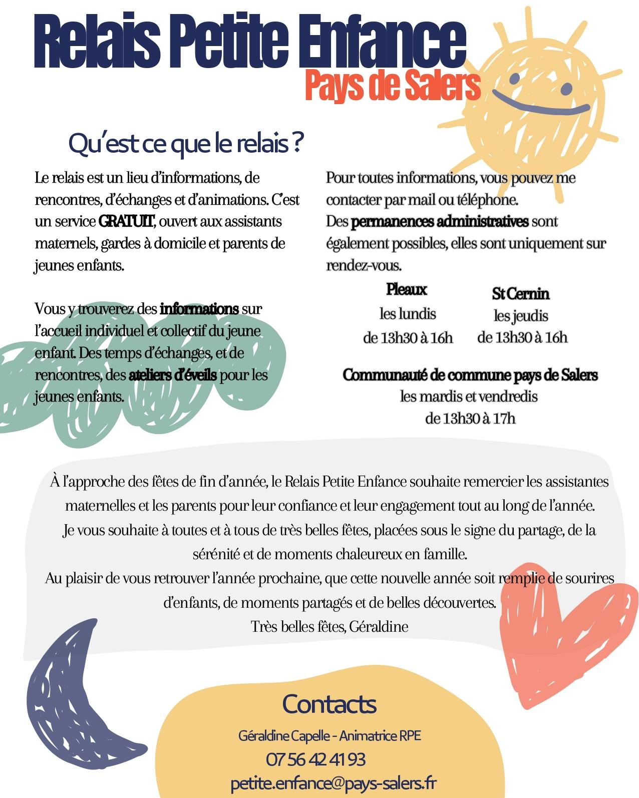 Le Relais Petite Enfance du Pays de Salers est administré par la Communauté de Communes du Pays de Salers, la CAF, le Conseil Général, la MSA…