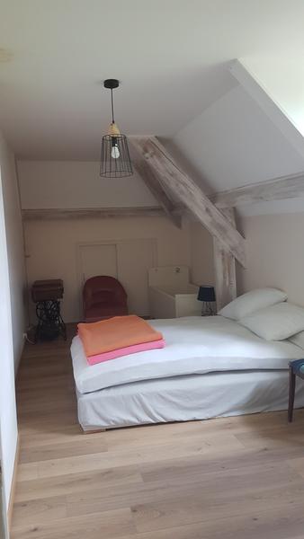 Maison située dans un petit hameau tranquille à 1 km du bourg où l'on trouve une boulangerie, épiceries… 4 chambres (3 lits de 140 + 1 double lit en 90 + 1 lit simple + 1 lit enfant), salon, salle à manger, 2 salles de bain.