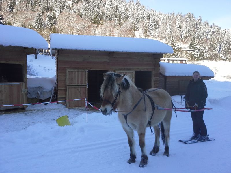 Pendant les vacances de printemps, découverte du ski-joëring, pour tous niveaux et tous âges. Activité ludique en skis, tracté par un cheval. Poney luge (pour - 9 ans) et baptêmes poneys. Les Randonnées à cheval si le temps le permet en hiver.