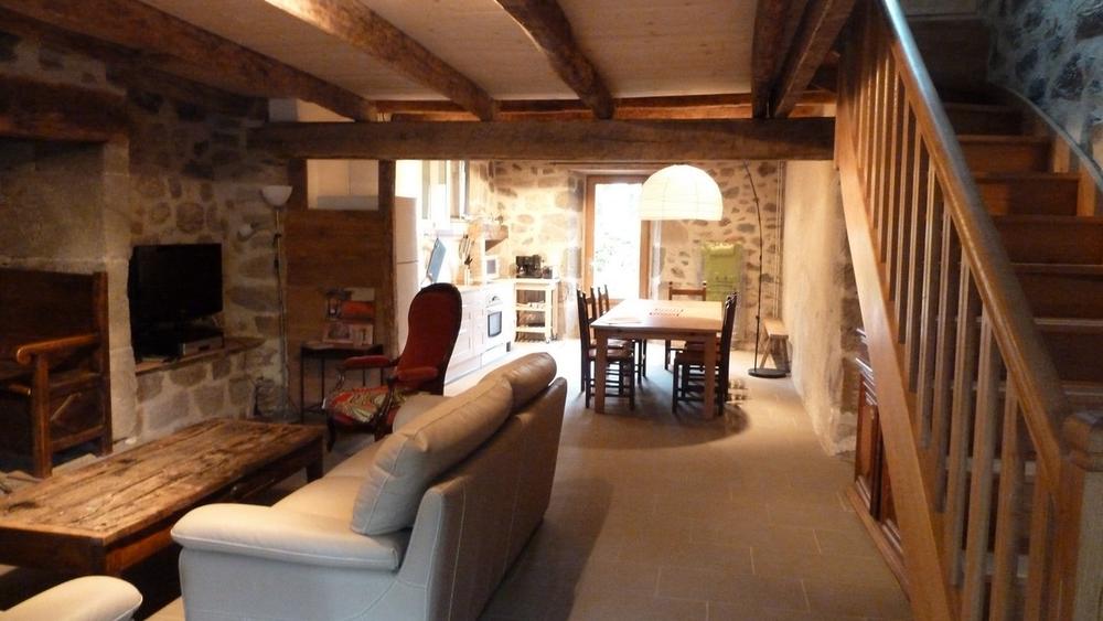 Au coeur du Parc des Volcans, belle maison de caractère dominant une vallée, restaurée avec beaucoup de charme dans le respect de la pierre et des bois anciens, comprenant 2 gîtes mitoyens de 6 et 4 pers.