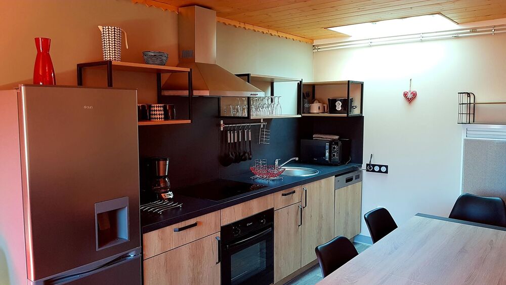 – lave-vaisselle, four, micro-ondes, réfrigérateur, congélateur, cafetière et machine Nespresso, grille-pain, bouilloire, fond de cuisine, mixer, presse-agrumes…
