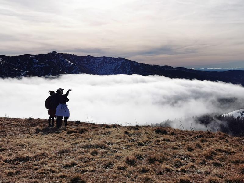 Dans la charmante vallée d'Albepierre, nous parcourons les forêts aux lumières féeriques. L'imaginaire en éveil, nous progressons jusqu'à gagner les hauteurs infréquentées, ces zones d'estives qui attendent l'arrivée des vaches prévue fin mai.