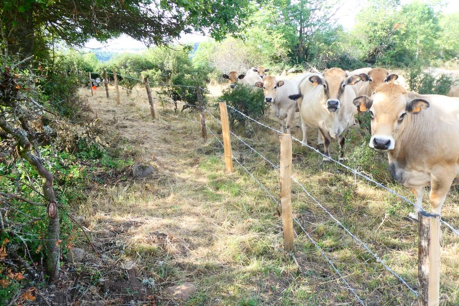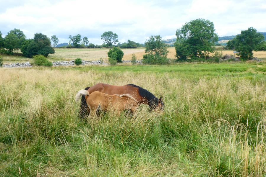 On longe le bord de côte en dominant la vallée de l'Alagnon, on traverse le plateau en apercevant le Plomb du Cantal et on arrive à la zone humide / tourbière (que nous appelons le Lac), puis sur la place du travail à ferrer et on traverse le village, son four banal et son église romane, pour aboutir au cimetière.