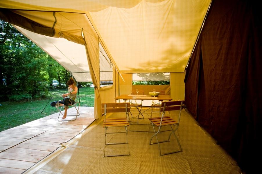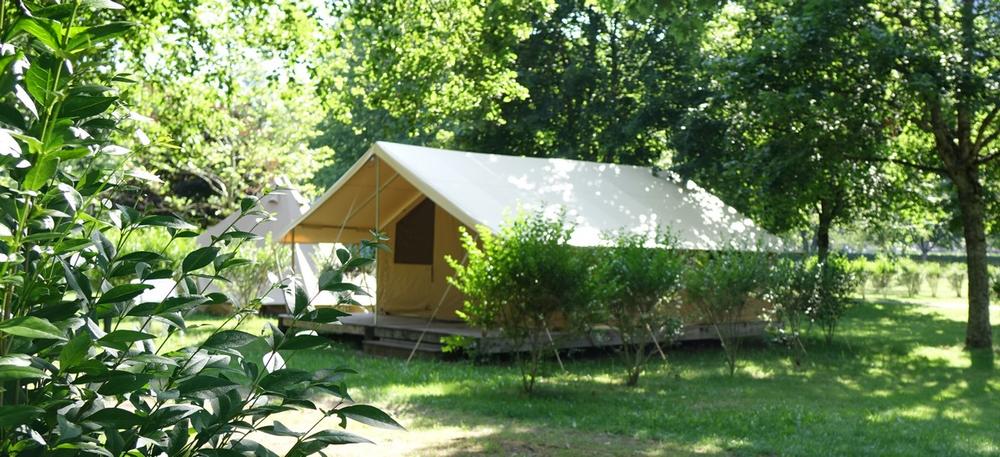 Location tente lodge : 270 à 340€/sem – 52 à 57 €/nuit (min. 2 nuits)