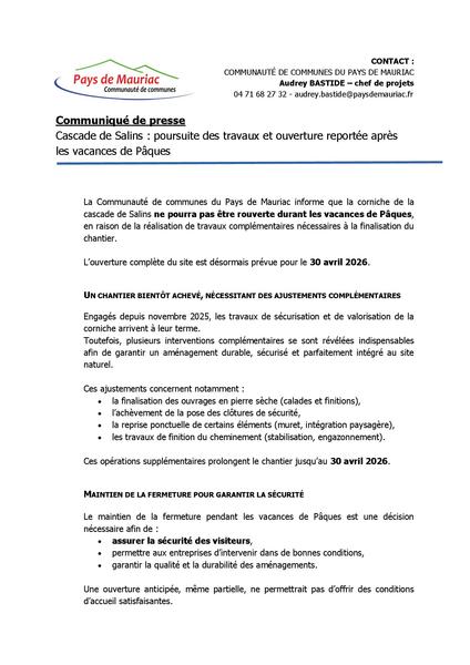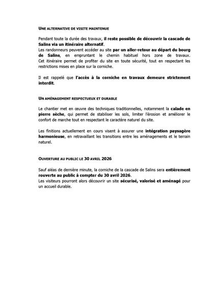 Cascade de Salins ! POURSUITE DES TRAVAUX, OUVERTURE REPORTÉE AU 30 AVRIL 2026