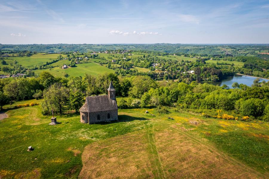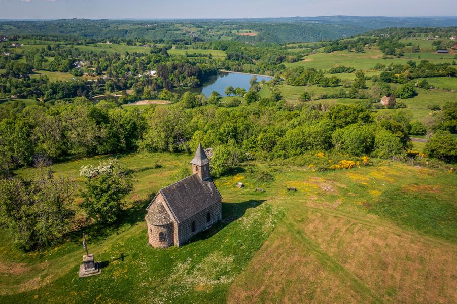 Installée sur une ancienne bouche volcanique, la chapelle accueille chaque année, depuis le moyen-âge, une foire en juin. Le panorama est remarquable, il s’étend à l’ouest des gorges de la Dordogne aux monts de Corrèze, au nord vers le massif du Sancy et à l’est vers les puys du volcan cantalien (table d’orientation).