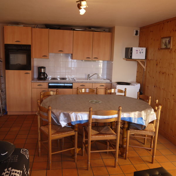 Equipements : Télévision, lecteur DVD, micro-ondes+ four traditionnel, plaques inductions, lave linge, lave vaisselle, casiers à skis.