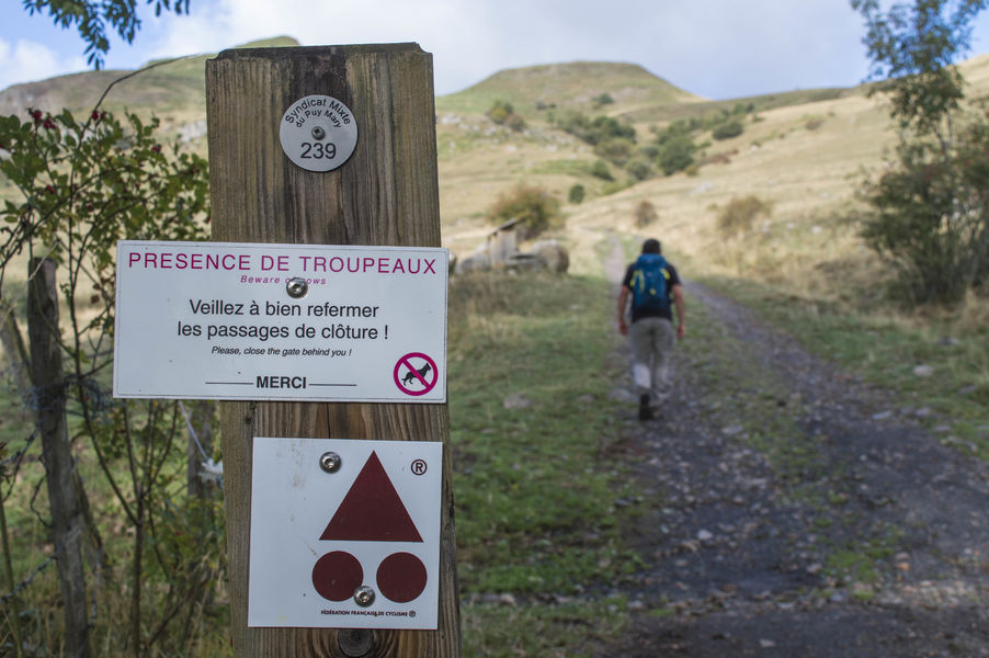 Départ- Le départ se situe à Dienne face à la poste. Rejoindre l’église et le foyer de ski de fond. A sa hauteur, monter le chemin goudronné. Il devient empierré, passe devant le cimetière et s’élève sur les flancs de la vallée. Franchir une clôture et monter en face dans les pâturages. Passer devant un buron, traverser le ruisseau de Grouze et continuer dans les virages. La pente s’adoucit. Repérer la croix du gendarme.