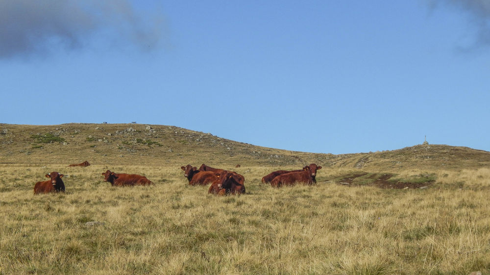 2- Continuer vers la droite, les premiers Quirous (cairns de basalte) apparaissent. Les suivre sur le plateau en franchissant plusieurs clôtures.
