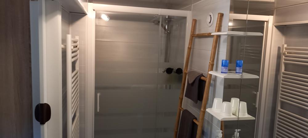 Chambre privative avec salle de bain douche et WC.