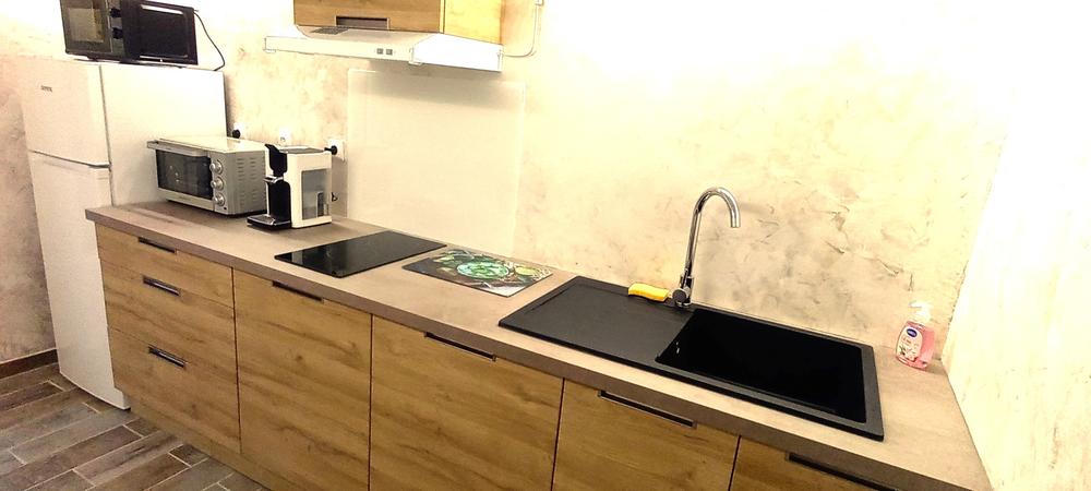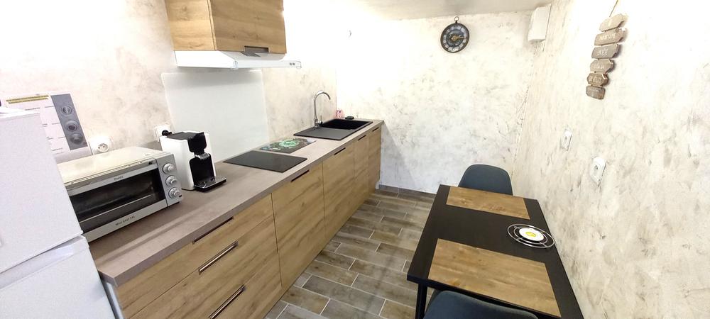 La chambre dispose d'un lit 160×200, et d'un lit 90 x190 et d'un lit bébé sur demande. Dressing .Cuisine équipée