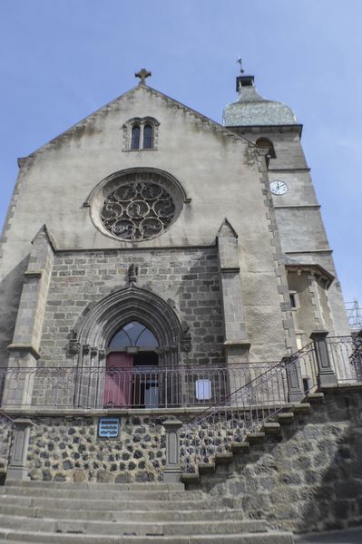 Une échauguette appartenant à une maison voisine a été conservée et placée à gauche du portail sud. Un clocher à bulbe a remplacé le clocher auvergnat traditionnel. L’architecture intérieure est sobre et harmonieuse : une vaste nef, sept chapelles latérales.