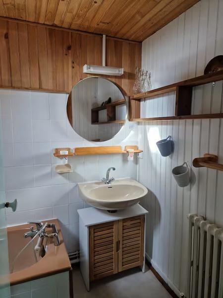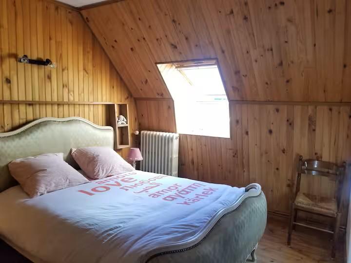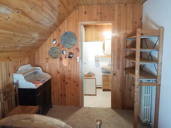 Au RDC : hall d'entrée avec WC, grande pièce ouverte en L avec poêle à bois, cuisine, et séjour/salon orienté sud. A l'étage : 3 chambres et 1 salle de bain avec baignoire. Grand cellier au RDC bas. Deux jardins avec du soleil toute la journée. Connexion internet Fibre Optique.