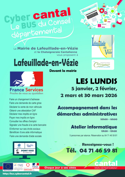 13h30-15h30 : atelier informatique (5 personnes par séances) sur réservation.