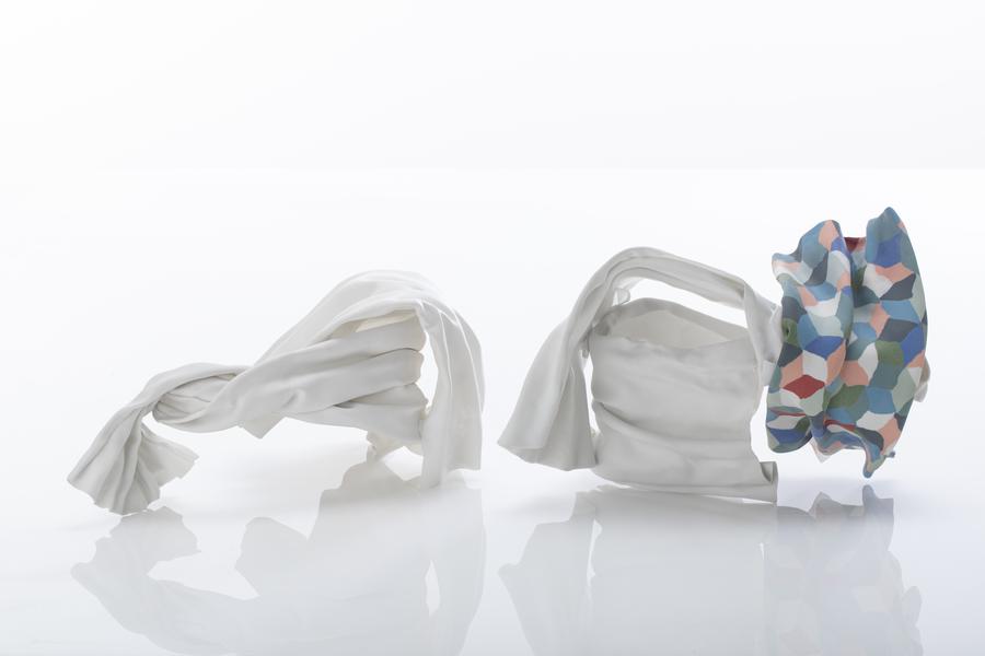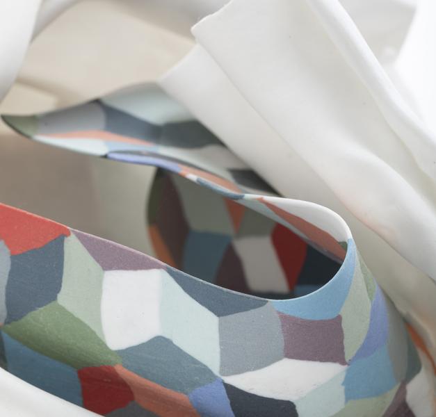 La céramiste vous ouvre l’espace d’exposition aménagé à son atelier… Des sculptures abstraites en porcelaine qui défient la matière, tracent le vide et chorégraphient l’espace…