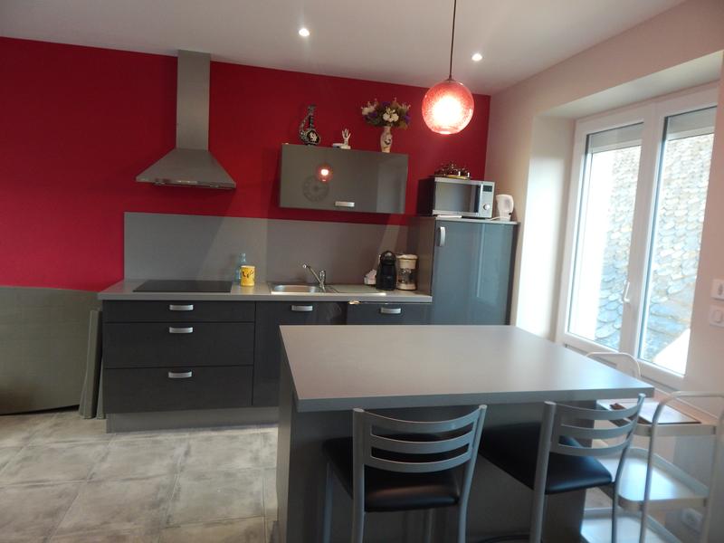 Petite maison auvergnate en pierres apparentes, agréable et tranquille, entièrement rénovée et située dans le bourg de Pierrefort, près des commerces et services.