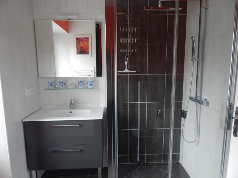 Etage de 32m² avec 2 chambres équipées de TV (1 lit 140 et 2 lits 90) et salle d'eau (douche à l'italienne et WC).