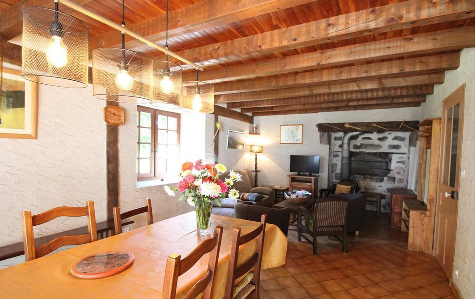 Séjour, coin-cuisine. 2 chambres avec 1 lit 2 personnes, 1 chambre avec 2 lits 1 personne. Salle d'eau, salle de bains, 2 wc indépendants. Chauffage électrique selon consommation, cheminée avec insert (bois 50 €/m3). Téléphone téléséjour. Garage. Terrasse. Cour et terrain clos. Equipement bébé. Commerces à Polminhac à 8 km. Aurillac 23 km. Swin golf 8 km. Châteaux. Casino à Vic sur Cère 9 km.