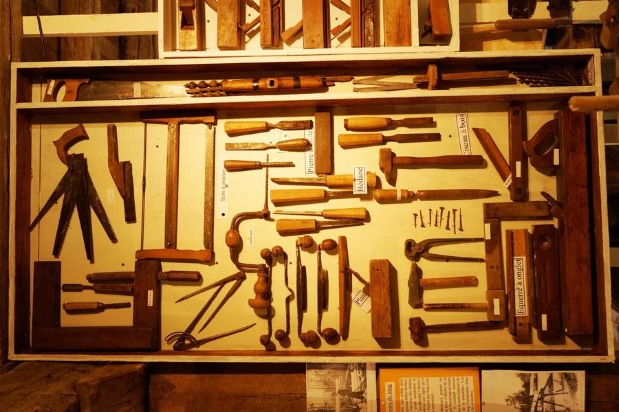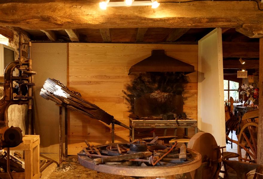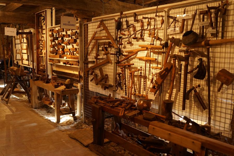 Des espaces présentent des métiers et leur outils : bûcheron, menuisier, sabotier, forgeron, charron...