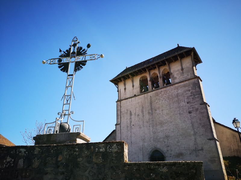 Au sommet de l'église est perché un magnifique clocher à peigne à trois carillons.