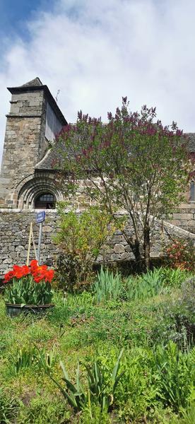 Un magnifique maître-autel du 17ème est surmonté d'un retable en bois doré. L’autel actuel « fort ancien » a été retrouvé derrière le retable. Une pierre amovible signale un ancien usage de reliquaire ou de cache. Un petit bénitier du 14ème siècle dont le godet est surmonté d’une plaque en argent, gravée et ciselée (classé en 1908). Une croix noire en pierre, datée de 1888, dans la chapelle de droite. A l’intérieur une pierre très ancienne, sculptée de figures d’animaux, chevaux ou des taureaux ? Une cuve baptismale ancienne à trois pieds.