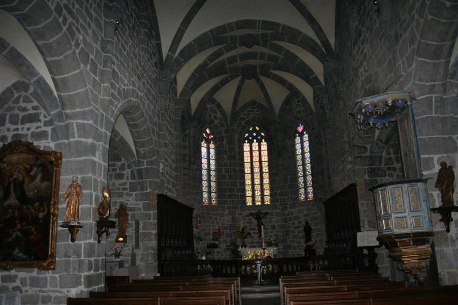 A l'intérieur, sur la clef de voûte Gothique du chœur se trouve un écu aux armes de Jacques Comborn, évêque de Clermont, seigneur de St Martin, "Maitre d'œuvre" de la restauration et de la transformation de l'édifice au XVème siècle.