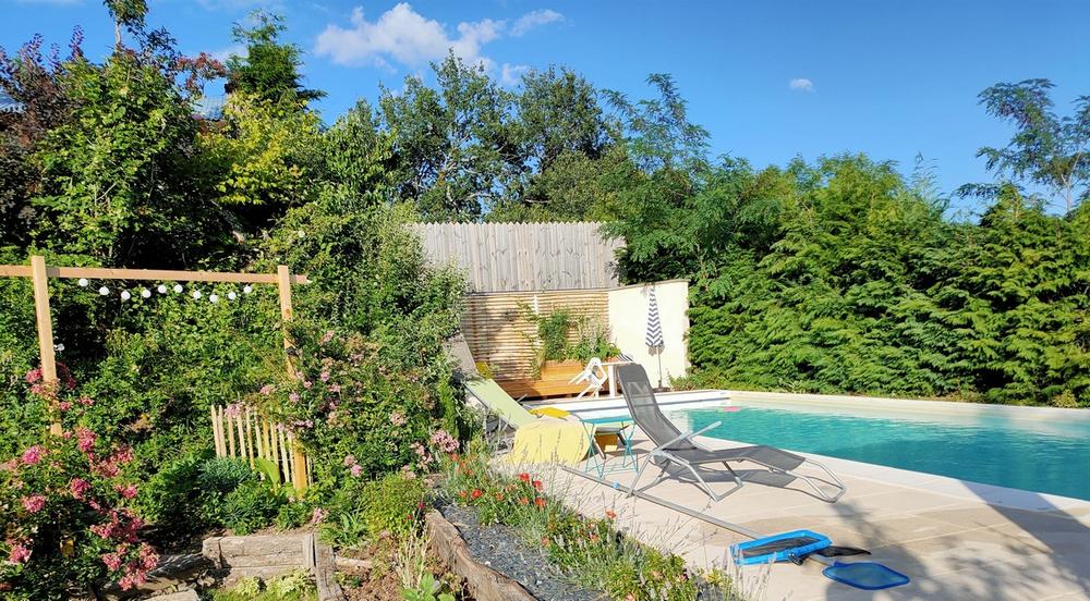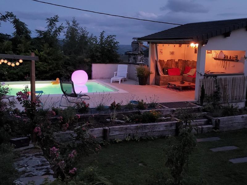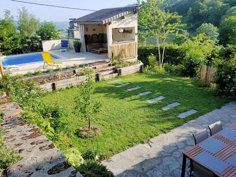 Jardin aménagé en paliers de 1100 m², sans vis à vis mais avec vues panoramiques, terrasse plein sud et grande piscine plein air totalement privative (12*4) avec pool-house aménagée (plancha, frigo…) : tout cela promet de beaux moments dans ce lieu un endroit paisible, loin du tumulte de la vie, un endroit où vous vous sentirez immédiatement à votre place et que vous ne voudrez pas quitter ! Nous aurons le plaisir de vous accueillir personnellement, de vous proposer un petit guide d’accueil, de répondre à vos sollicitations, de vous suggérer si vous le souhaitez nombre de balades, adaptées au niveau de chacun, hors des sentiers battus. Cela sans ingérence de notre part : nous n’habitons pas dans ce hameau et vous serez véritablement chez vous durant vos vacances !