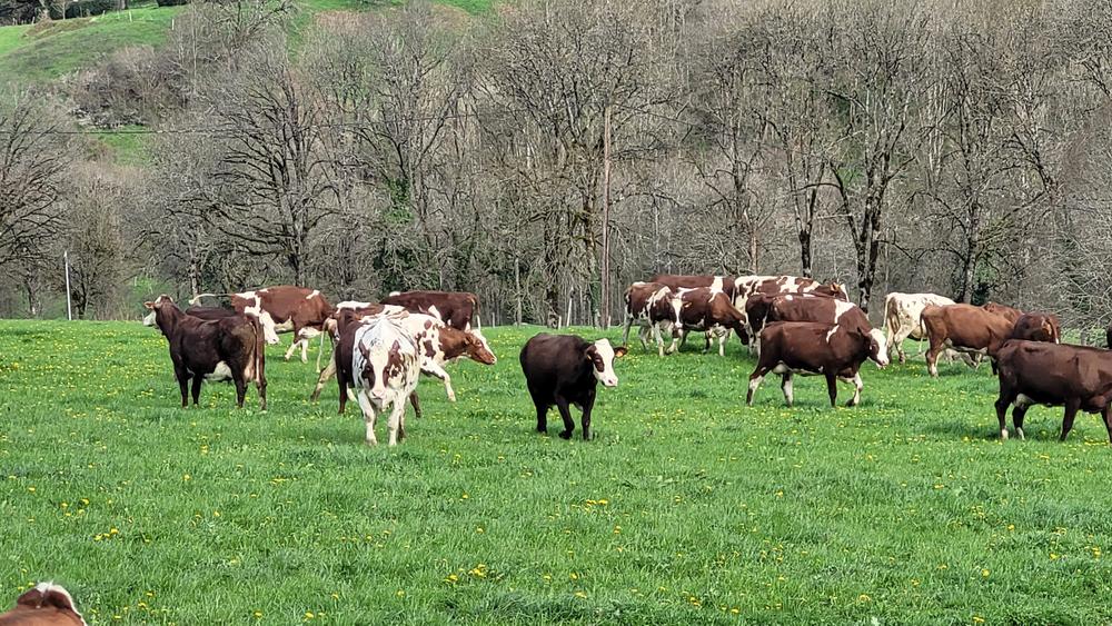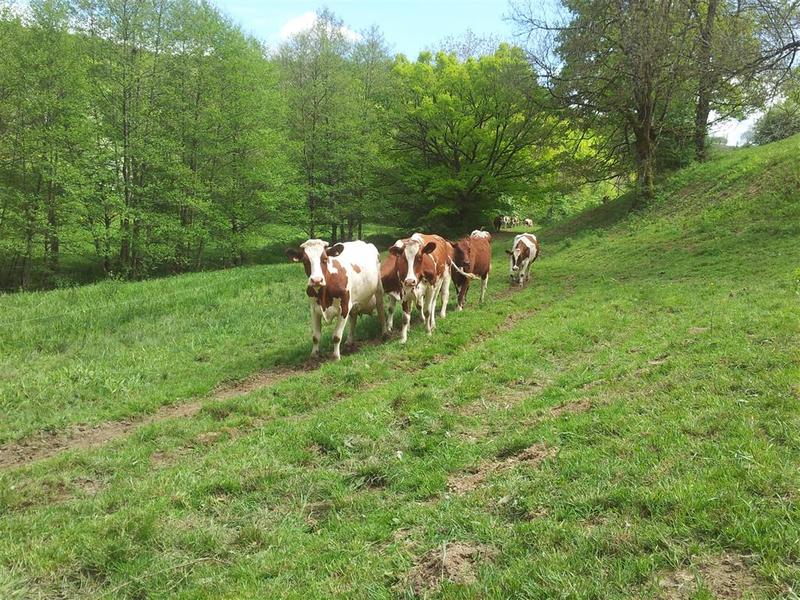 Petite exploitation de 50 vaches laitières de race Abondances / Holstein Rouge avec transformation de fromage AOP Salers et AOP Cantal.