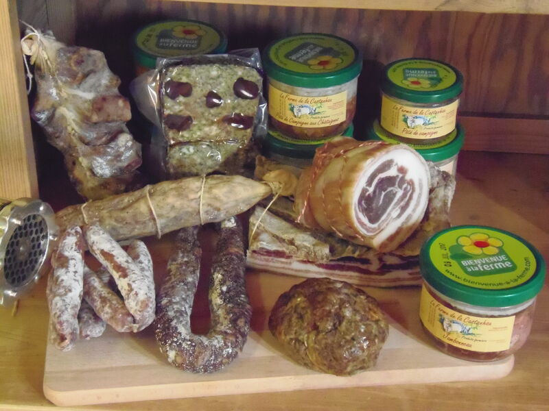 “Bienvenue à la ferme”. Élevage de porcs élevés sur paille et nourris avec notre farine de céréales. Fabrication traditionnelle de saucissons, saucisses sèches, jambon de pays, conserves (pâtés, fritons, plats cuisinés …) et viande de porc à griller.