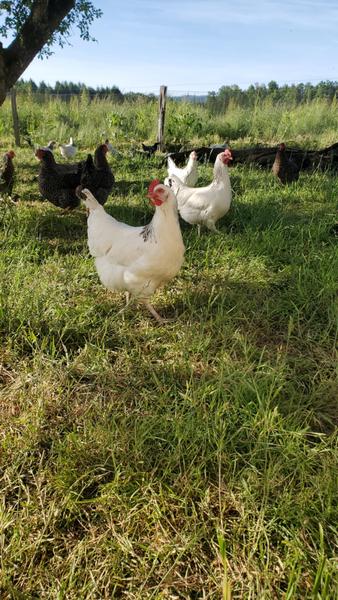 Je propose aussi des œufs plein air fermiers grâce à des poules pondeuses vivant au pied de mes arbres fruitiers.