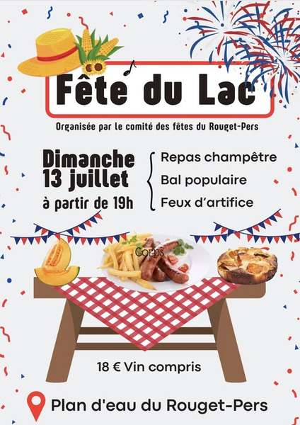Repas champêtre (avec réservation sur place), animation musicale et feux d’artifice.