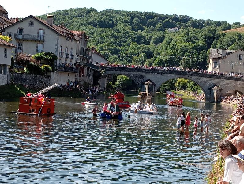 * 14h-16h30 : défilé et concours d'embarcations (OVNIs) sur la Cère. Animation musicale avec la banda.
