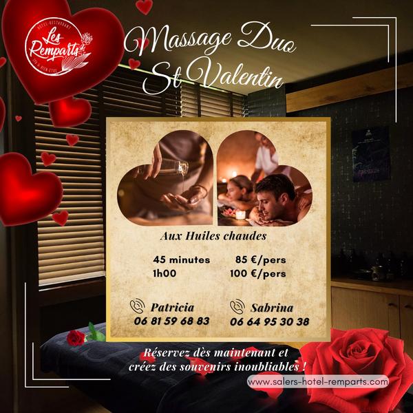 Vous attendiez l'opportunité d'en profiter en amoureux ? Notre chef et son équipe vous ont concocté un menu spécial St-Valentin… Patricia et Sabrina vous proposent des massages en duo aux huiles chaudes…