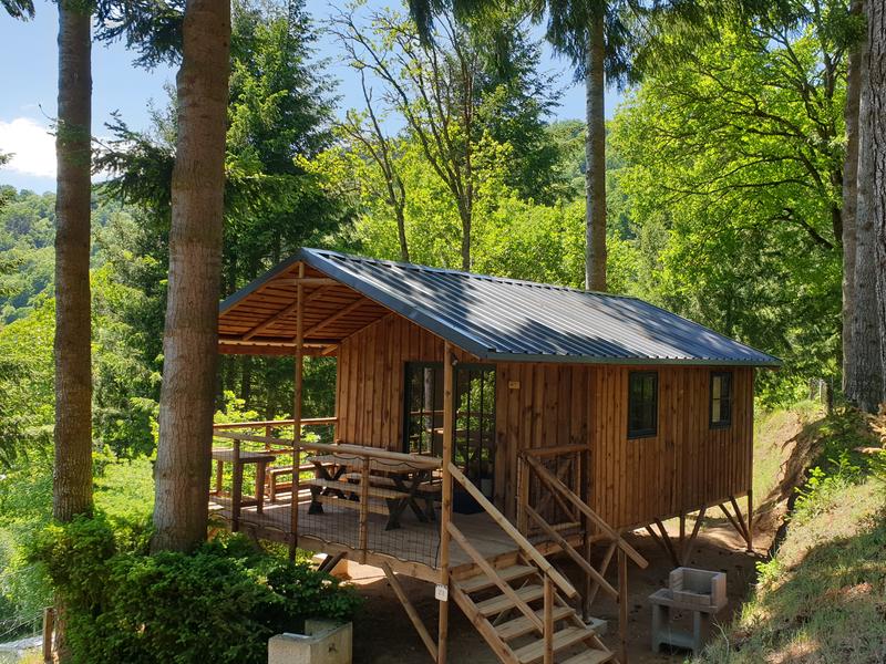 Camping location chalets, mobil-homes et tentes, au cœur de la nature, avec vue panoramique sur les Gorges de la Truyère et son lac.