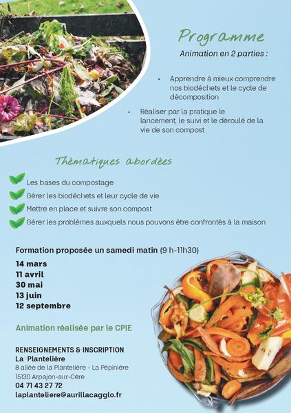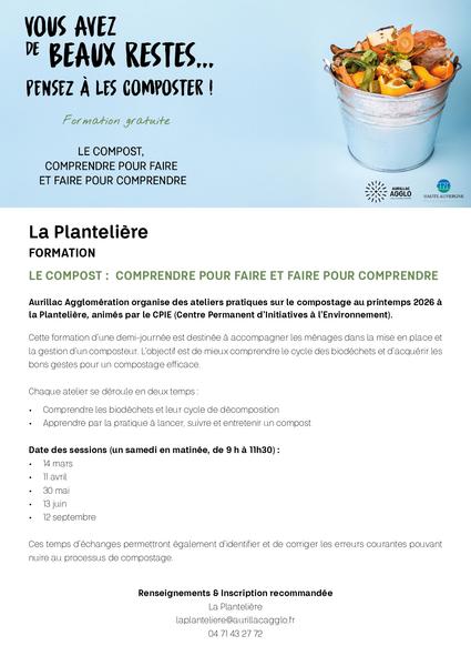 Aurillac Agglomération organise des ateliers pratiques sur le compostage au printemps 2026 à la Plantelière, animés par le CPIE (Centre Permanent d’Initiatives à l’Environnement).
