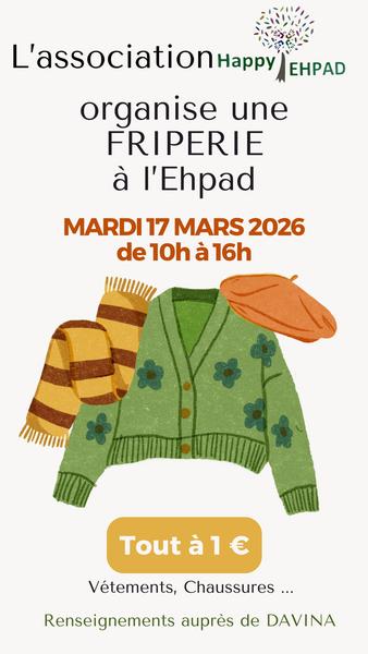 L'association Happy EHPAD organise une friperie au sein de la Résidence Jardins St-Illide ..