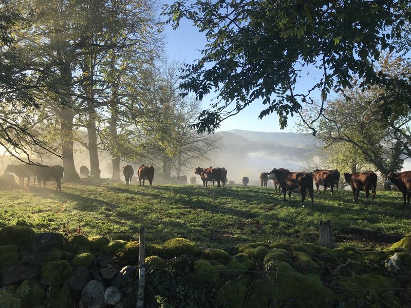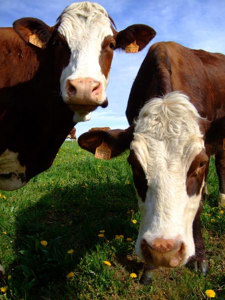 Ferme en agriculture biologique. 45 vaches laitières de race Abondance, engraissement de porcs.