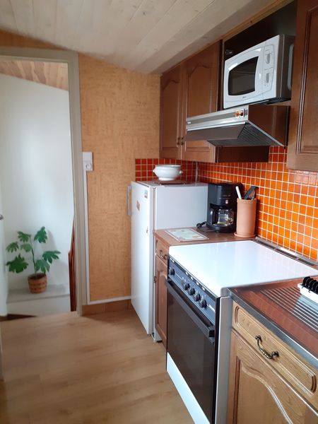 Séjour avec balcon, vue sur jardins. Cuisine équipée. Chambre avec 1 grand lit et de nombreux rangements, salle de bain attenante. Entrée indépendante en rez-de-chaussée (possibilité de rentrer un vélo).