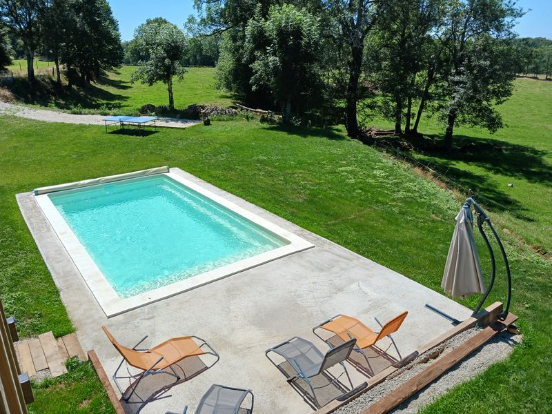 Piscine chauffée, bain de soleil, table de ping-pong, terrain de pétanque, balançoire, jeu de raquettes, barbecue à charbon.