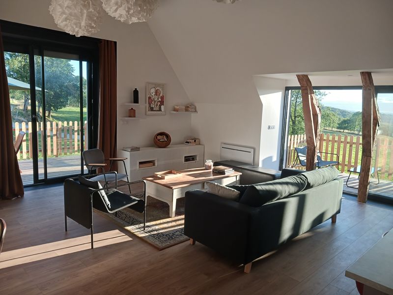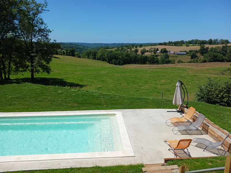 A dix minutes de Salers, une ancienne grange rénovée en 2023. Très belle vue sur la campagne, terrain avec piscine chauffée. Chemins de randonnée au départ du gîte. Grande pièce de vie et trois chambres avec chacune sa salle d'eau.