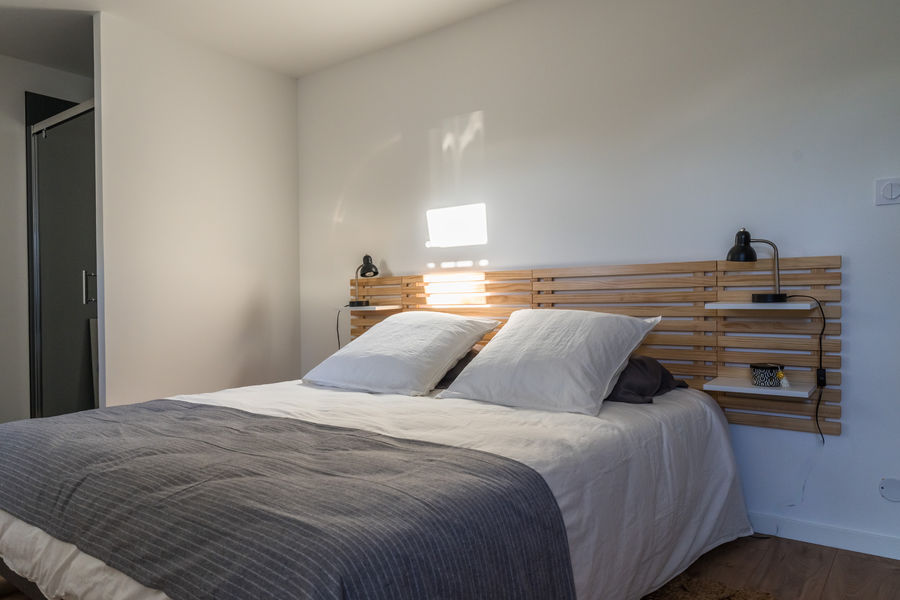 Deux chambres de plein pied avec chacune un lit en 160, une salle d'eau par chambre.