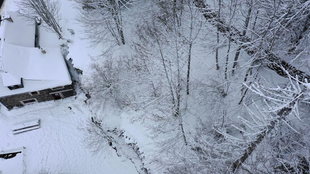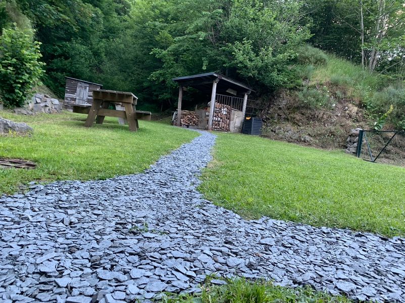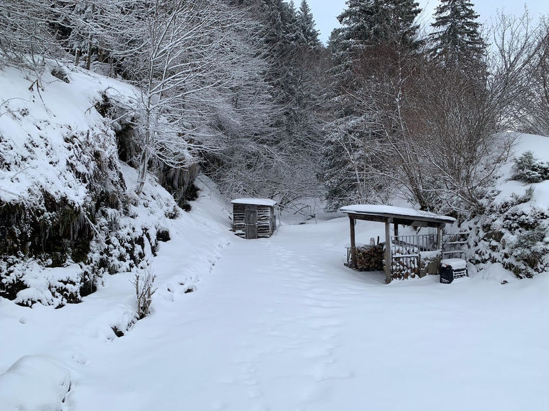 Terrain commun d'environ 500 m2 au 2 gîtes avec grands barbecues en pierre et tables de jardin, 5 places de parking privé (selon enneigement).