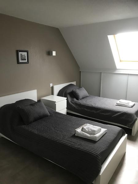 Dans une ancienne ferme rénovée, comprenant 11 gîtes de 2 à 8 places, classés 2 et 3 étoiles vous trouverez cet appartement de 4 à 6 personnes. Cuisine équipée, salon, canapé convertible, 1 chambre double et 1 chambre avec 2 lits simples, 1 salle de bain, wc indépendant. A 300m du centre ville et 5 minutes de la piscine et des différents complexes sportifs