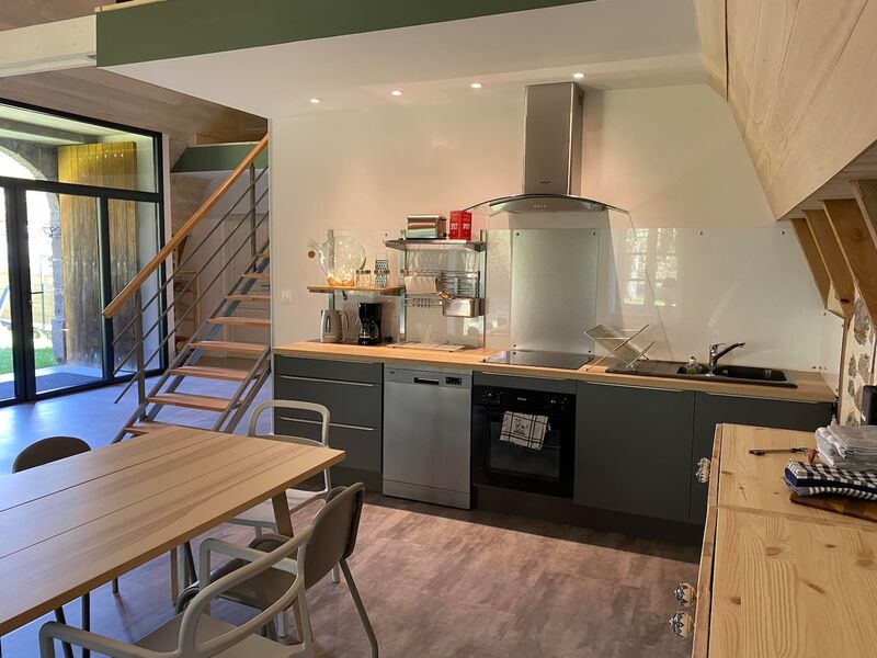 Au RDC : grande pièce de vie, salle à manger, un salon avec coin TV à écran plat, canapé – Cuisine ouverte entièrement équipée – Une chambre avec un lit pour deux personnes (en 140) – Une chambre avec deux lits en 90 ou un lit en 180 – Salle d’eau avec douche à l'italienne – WC indépendant.