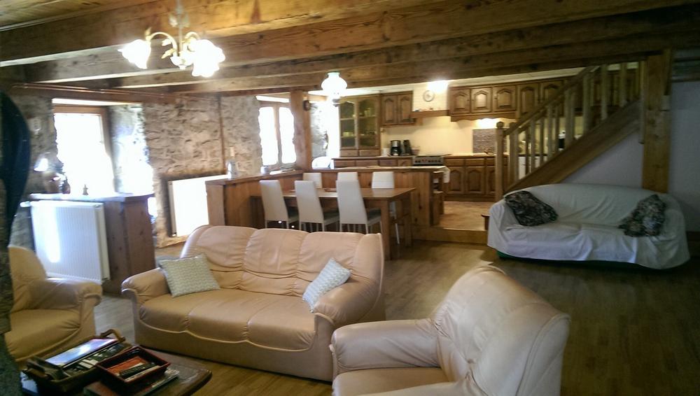 Gîte de 6 à 8 personnes avec un grand séjour, cuisine de 75m² qui permet les tablées et les rencontres conviviales près de la cheminée, 2 chambres avec 1 lit de 140 chacune, 1 lit bébé, 1 chambre avec 2 lits de 90, salle de bain, 2wc. Terrasse, jardin clos. Chauffage central et cheminée bois gratuit. Suivant les disponibilités ce gîte peut se louer conjointement avec le gîte voisin d'une capacité de 9 personnes.